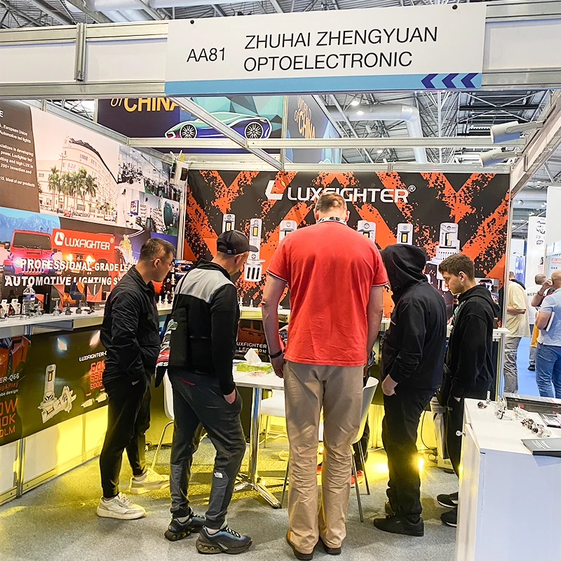 Während der Ausstellung präsentierte Luxfighter nicht nur die meistverkaufte Q66-LED-Scheinwerferserie, sondern auch eine Reihe leistungsstarker Automobilbeleuchtungsprodukte, darunter LED-Scheinwerfer, Nebelscheinwerfer und professionelle Low-Light-Beleuchtungsmodule. Aufgrund ihrer außergewöhnlichen Qualität, ihres fortschrittlichen optischen Designs und der Einhaltung internationaler Zertifizierungsstandards erregten diese Produkte große Aufmerksamkeit bei europäischen Käufern und Industriepartnern.